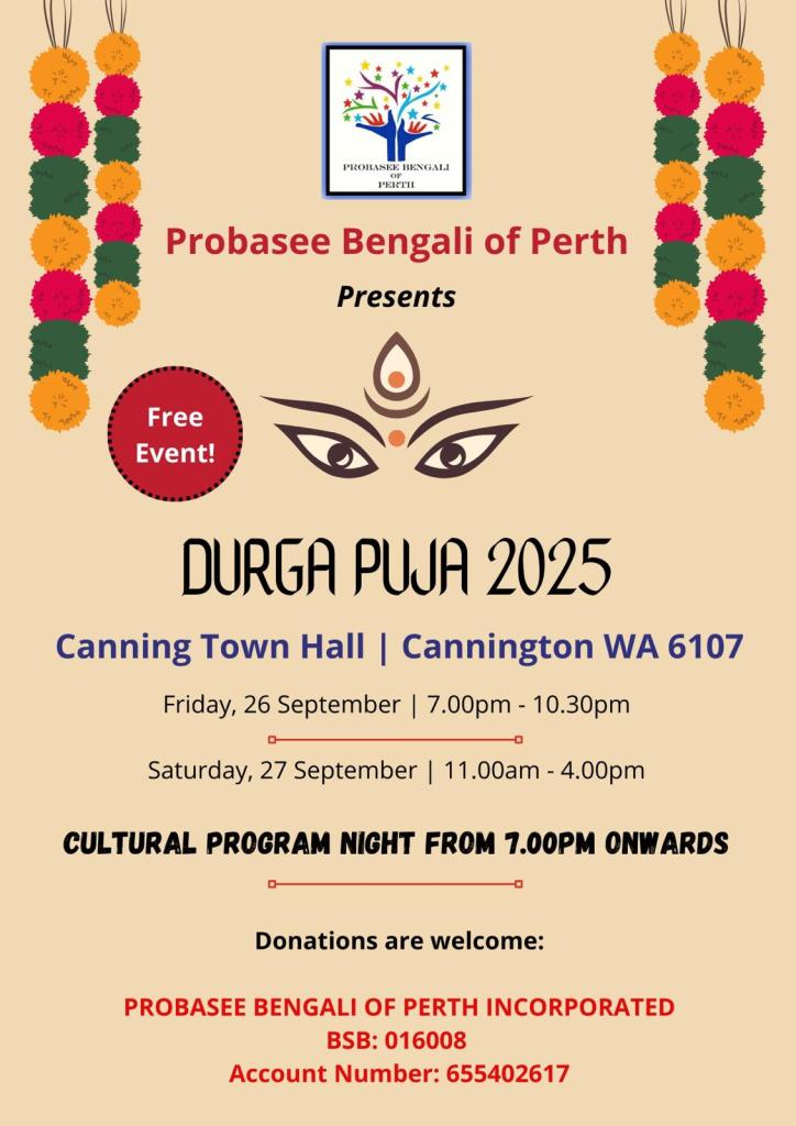 27th September, Saturday – 11 am to 4:00 pm (Ashtami Puja and Pushpanjali, Navami Puja and Dashami Puja and Sindur Khela).