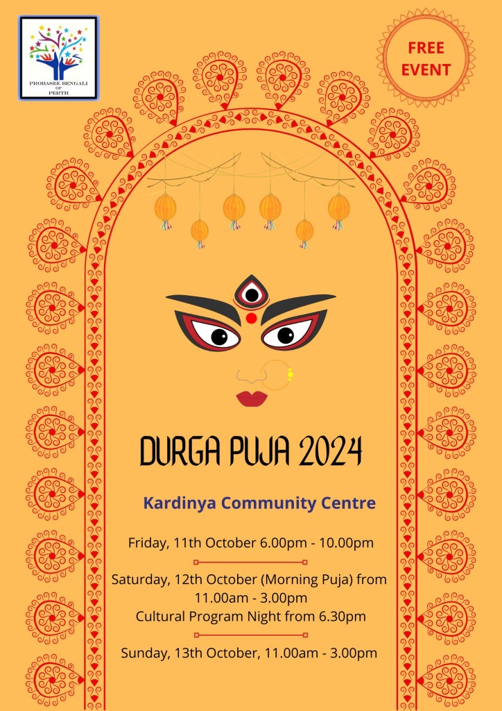 The big time of the year has arrived for Bengal’s greatest event, Durga Puja. Like every year, we would once again like to welcome you all to come together and participate in puja rituals, ceremonies, cultural programs and then wrap up your day by enjoying delicious Indian vegetarian food.